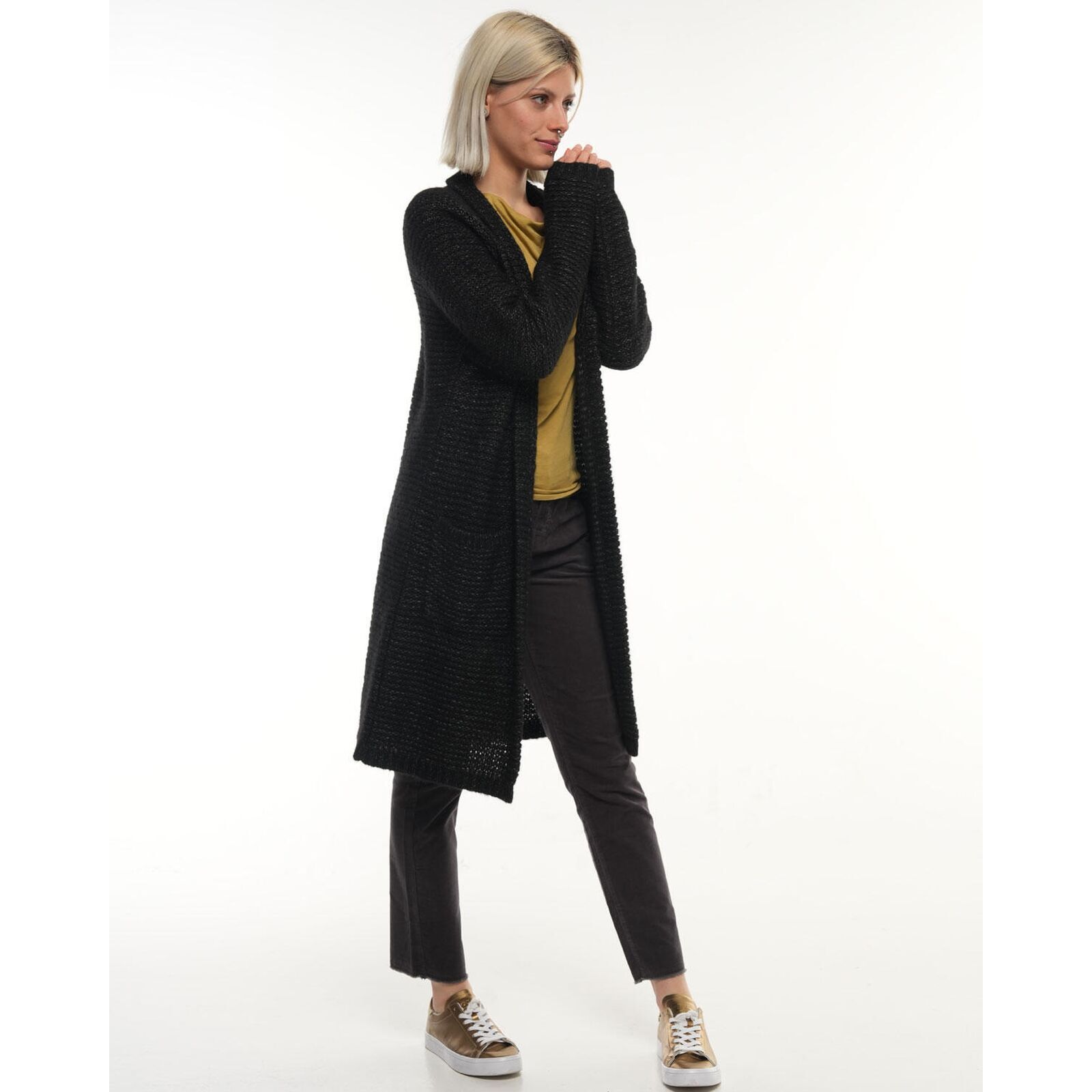 - Langer, offener Schnitt bis zum Knie