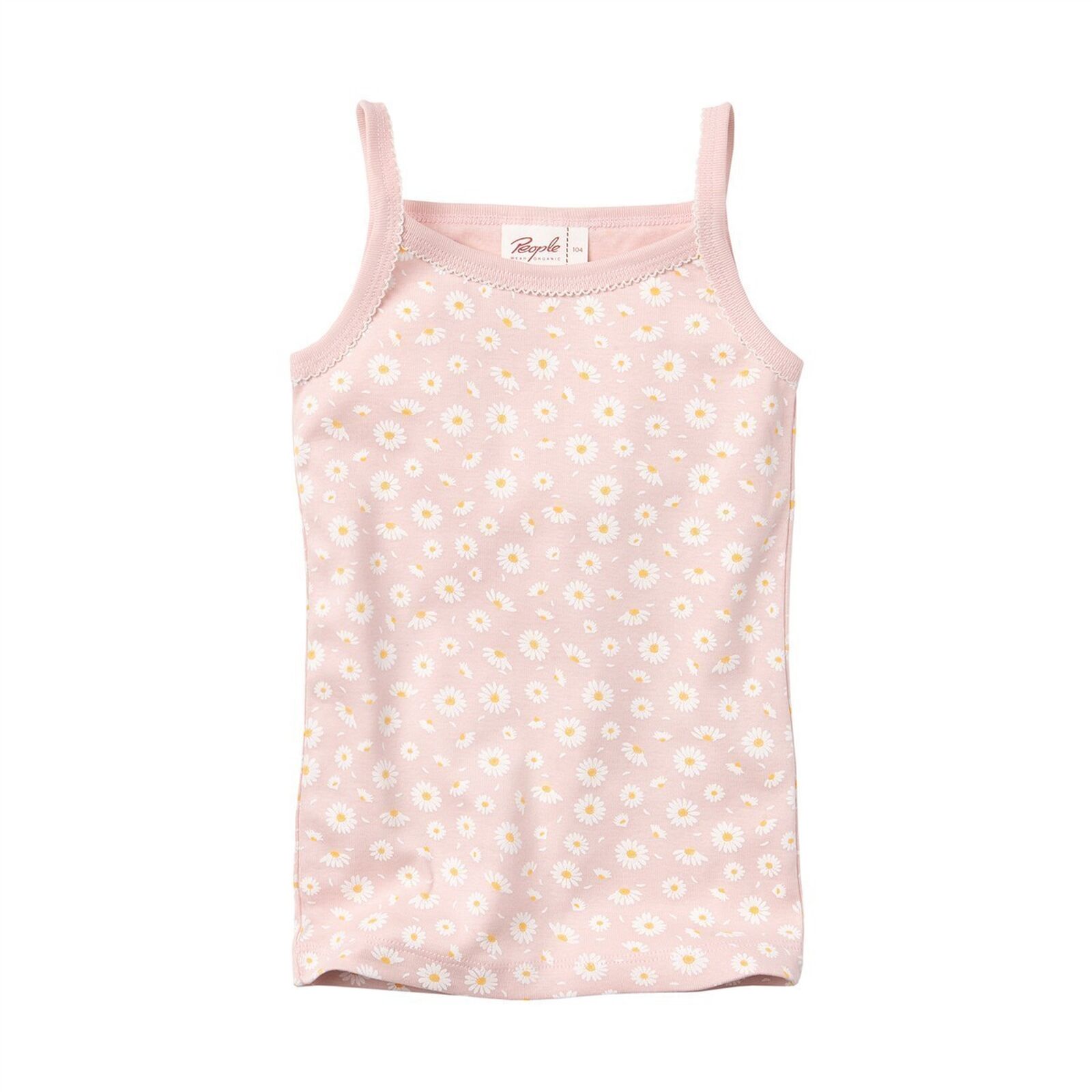 Das Kinder-Unterhemd von People Wear Organic kommt in zartem Rosa mit feinem Gänseblümchen-Print. Gefertigt aus Bio Baumwolle und mit schmalen Trägern ausgestattet, eignet es sich als Unterwäsche oder als leichtes Top an warmen Tagen. Ein unkompliziertes Basic für Alltag, Kindergarten und Freizeit.