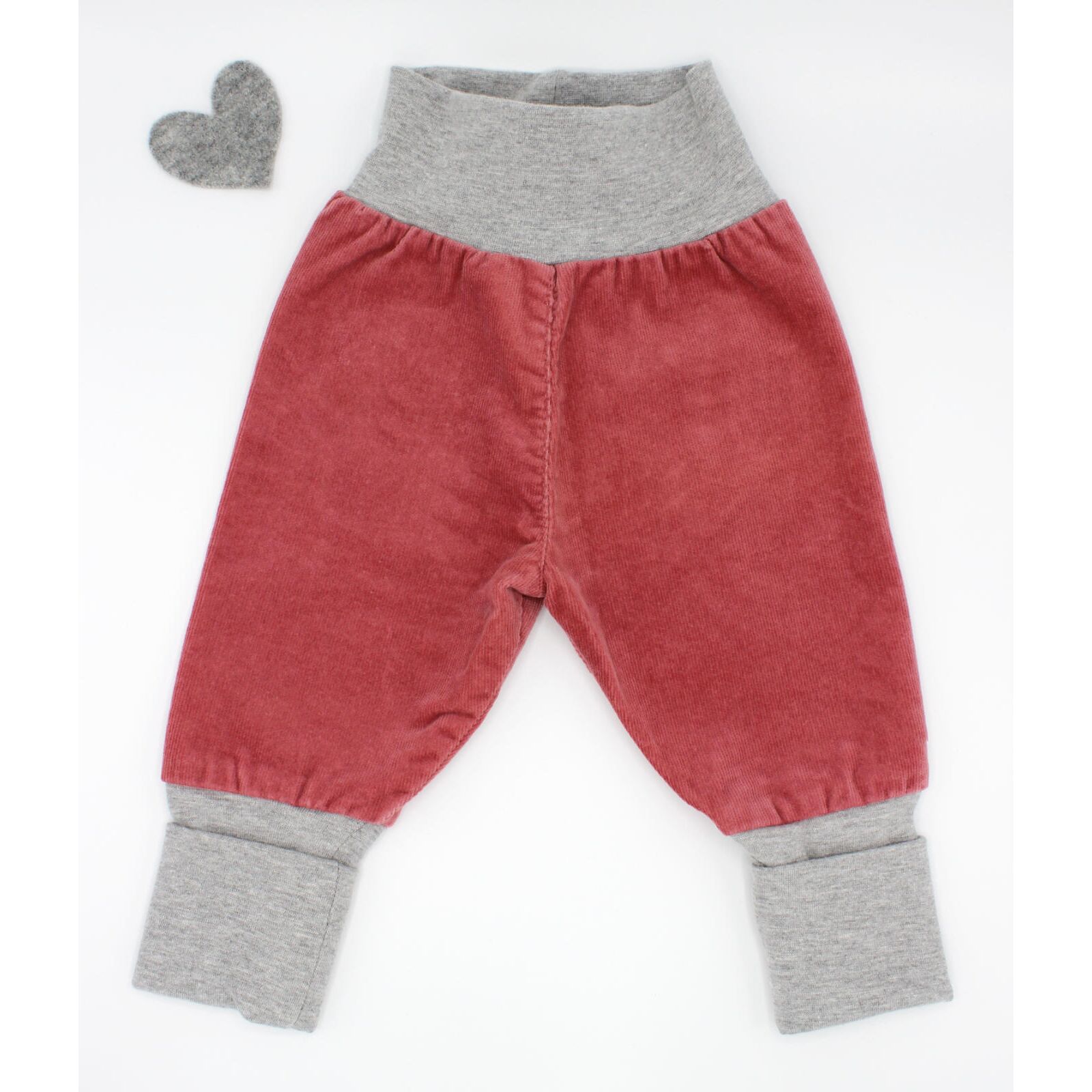 In enger Zusammenarbeit mit dem Hosenhersteller bloomers, wurde diese Hose speziell auf unseren Wunsch hergestellt. Sie ist aus robustem Babycord aus reiner Bio-Baumwolle gefertigt. Die extra langen Jersey-Bündchen sorgen dafür, das die Hose "mitwächst" und so länger getragen werden kann.