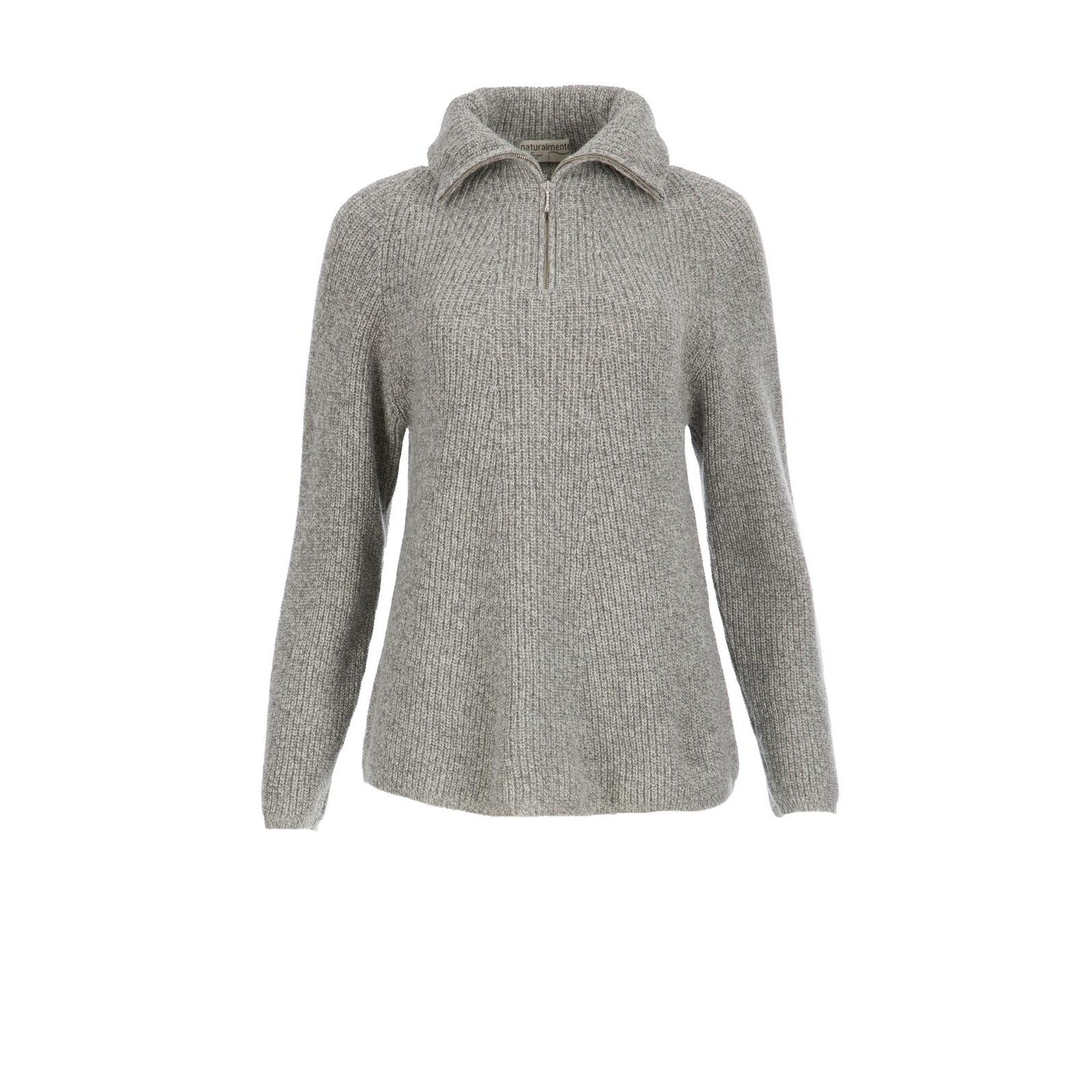 naturalmente Damen Pullover Perlfang-Troyer grau-white mel. S